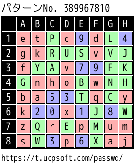 パスワードテーブルの使用及びパスワードの管理は自己責任でお願いします。